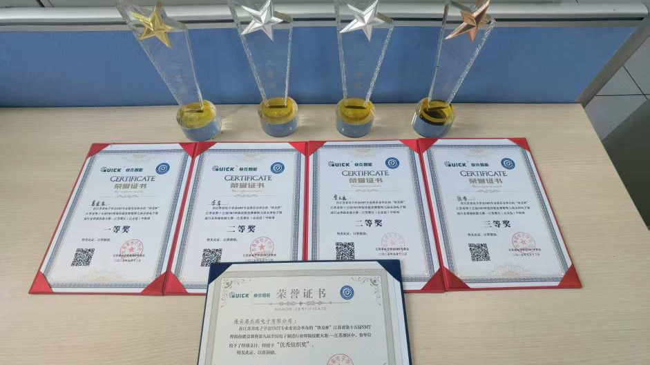 近日,由江苏省电子学会SMT专业委员会主办的“快克杯”江苏省第十五届SMT焊接技能竞赛暨第九届全国焊接能手选拔赛顺利落幕,中国船舶集团旗下连云港杰瑞电子有限公司(下称“杰瑞电子”)选派4人参赛并全部获奖。其中,葛露露荣获一等奖,李萍、曾庆露荣获二等奖,徐梦荣获三等奖,杰瑞电子喜获“优秀组织奖”。
